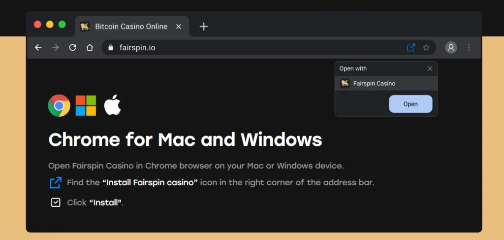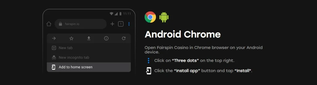 - Step 3: Click and Confirm: Tap the button, and a new icon go show for your phone’s home screen. The icon na the real Fairspin logo. Tap am to open the casino, and you go dey ready to play.